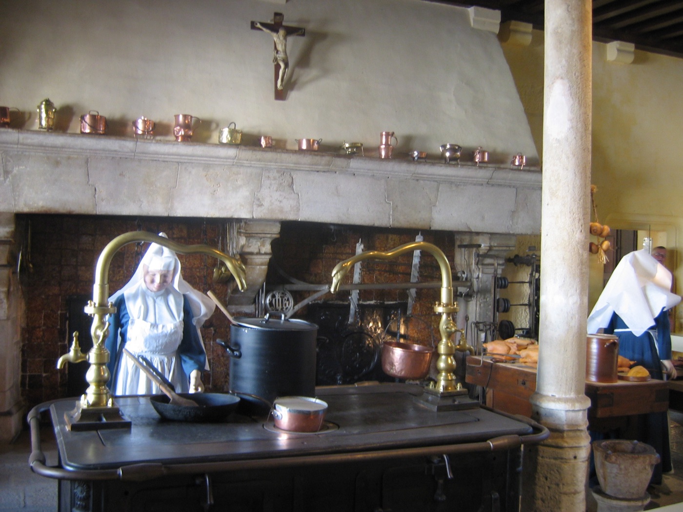 Parcourez la "salle des pôvres", avec ses deux rangées de lits à colonnes et rideaux, les cuisines, la pharmacie et les autres salles abritant les collections de coffres, tapisseries, etc... La succession des salles permet de comprendre comment s'ordonnait la vie hospitalière.